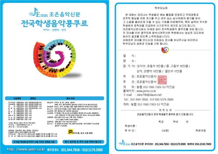 참가신청서 가정통신문 페이지 정보 작성자 jemncokr 작성일15-09-07 15:02 조회3,090회 댓글0건 이전글 다음글 목록 글쓰기 본문 부모님께 보내드리는 가정통신문 참가 신청서 입니다 ^^ 인쇄 하실때는 오른쪽 마우스 클릭하시고 사진으로 인쇄하시면 됩니다 ^^ 댓글목록 등록된 댓글이 없습니다. 이전글 다음글 목록 글쓰기